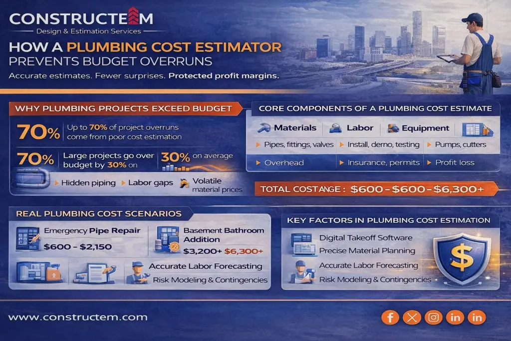 Companies like ConstructEM deliver reliable plumbing estimates for commercial and residential projects, helping contractors focus on execution rather than firefighting finances.